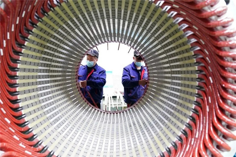 在哈电动装的生产车间,工人在进行生产作业(3月18日摄)。新华社记者 王建威 摄