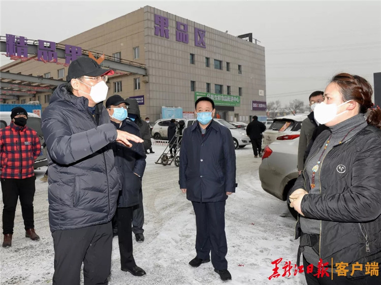 调研途中,王文涛还来到润恒国际食品交易中心,随机查验这家市场防控措施落实情况,向经营业户了解市场每日消杀措施以及个人防护情况。经营业户反映蔬菜供应充足价格基本平稳。王文涛叮嘱市场工作人员和下沉的松北区机关干部,要严格管控好市场,确保市场和人员安全。
