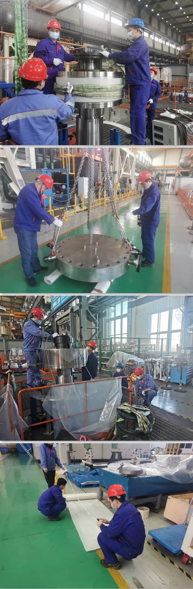 3月23日,在沈鼓现场进行服务工作的动装人员接到通知,因疫情原因沈鼓即将封闭厂区,除居家办公人员外,沈鼓集团要求各直属单位需报送自愿留守厂区人员。为保障在沈鼓进行的国和示范等国家重点项目的装配工作顺利进行,现场工艺部、核电部、制造部、检验部的全体人员主动报名留守沈鼓厂区以保障项目进展。制造部59岁的金福忠师傅,在自身带病的情况下,面对即将封闭厂区带来的种种不便,作为共产党员的他坚持坚守岗位,与其他工作人员奋战在装配一线。