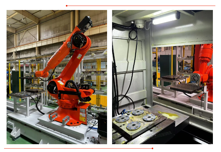 2024年初,针对公司核电主导产品CAP/AP系列屏蔽主泵电机轴承平衡块、挡板、瓦基、导瓦、支撑块、推力轴瓦隔热层等十余种小批量关键部件,开展柔性自动化加工模式探索研究。经过反复论证,确定通过零件自动输送系统、机床加工工作站、机器人执行系统、生产辅助系统、FMS柔性控制系统等配合,实现柔性自动化加工模式创新,推进产品质量和加工效率提升。