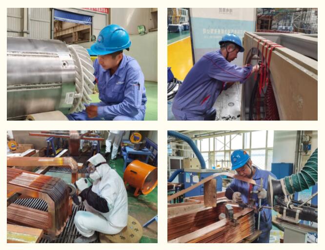 撸起袖子加油干,线圈制造部每天有过半员工无惧高温“烤”验毅然坚守在工作岗位,顺利完成了1107-2497/2509等定子线圈、1105-1044/1045/1046磁极线圈、1020-77核电项目线圈的关键工序,为中信重工、福建龙钢、昌江小堆等项目按期完工奠定坚实基础。