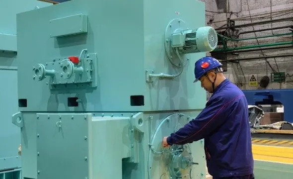 哈电集团动装公司操作者正在进行中钢土耳其出口电机工序收尾工作