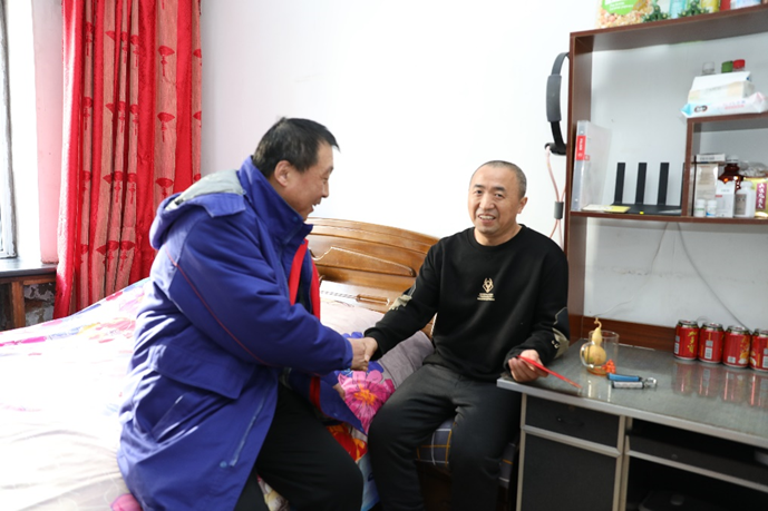 在电机制造部职工之家,孙运中副书记详细询问了困难党员王震的身体状况和家庭情况,鼓励他坚定信念、战胜困难。同时,孙副书记也代表公司向王震送上了新春慰问金和慰问品,让他深切感受到了组织的关怀和温暖。