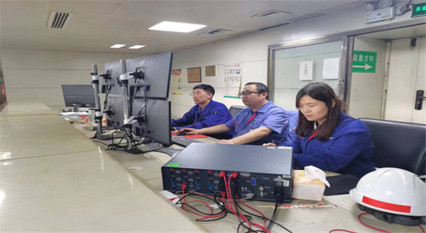 产品检验部张宇东、董同祥、孙颖正在进行昌江项目电机试验
