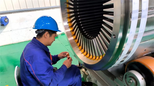 线圈制造部房广雷正在进行CAP1400定子下线前准备